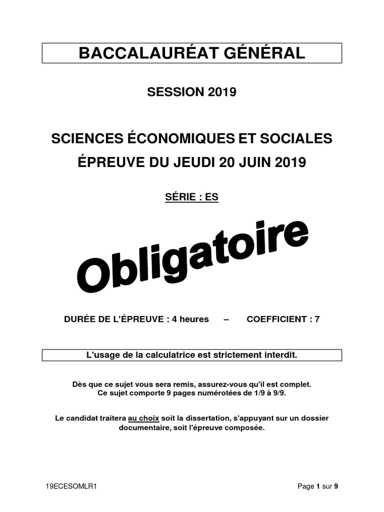 Les sujet et les corrigés seront disponibles après chaque épreuve. Bac es 2019 sujet ses obligatoire. sujet bac ses sujet bac ses.