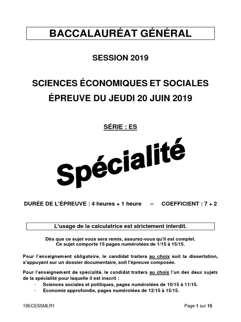 Une dissertation s'appuyant sur un dossier ou une épreuve composée en trois parties. Le premier sujet du baccalauréat n'a pas été distribué à pondichéry, en inde, comme chaque année, mais en amérique. Pour leur quatrième journée de bac 2019, les candidats de série es ont composé sur les ses.